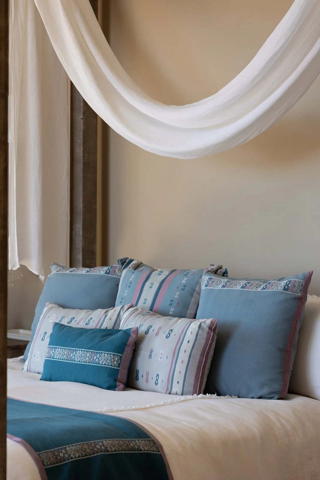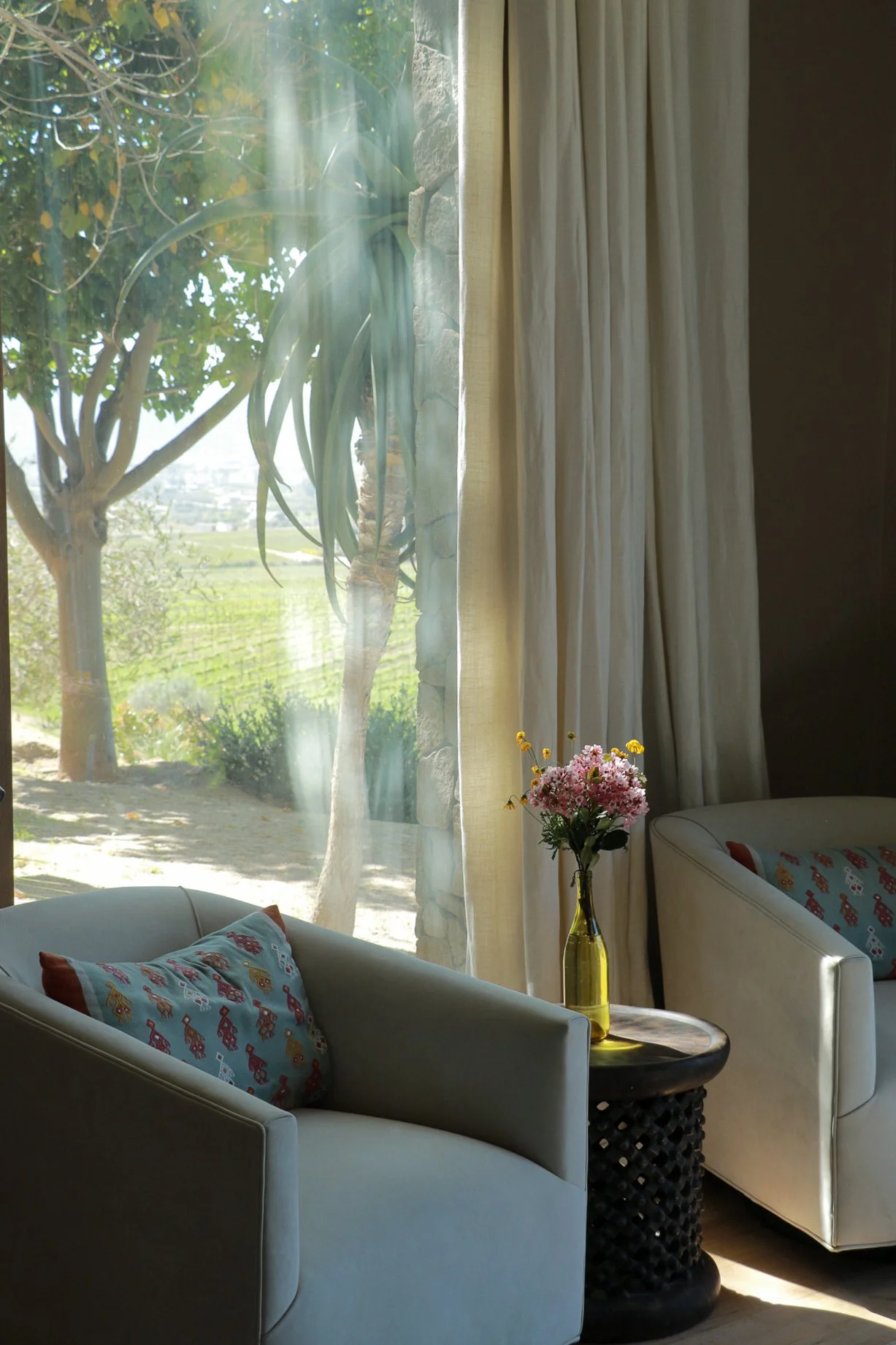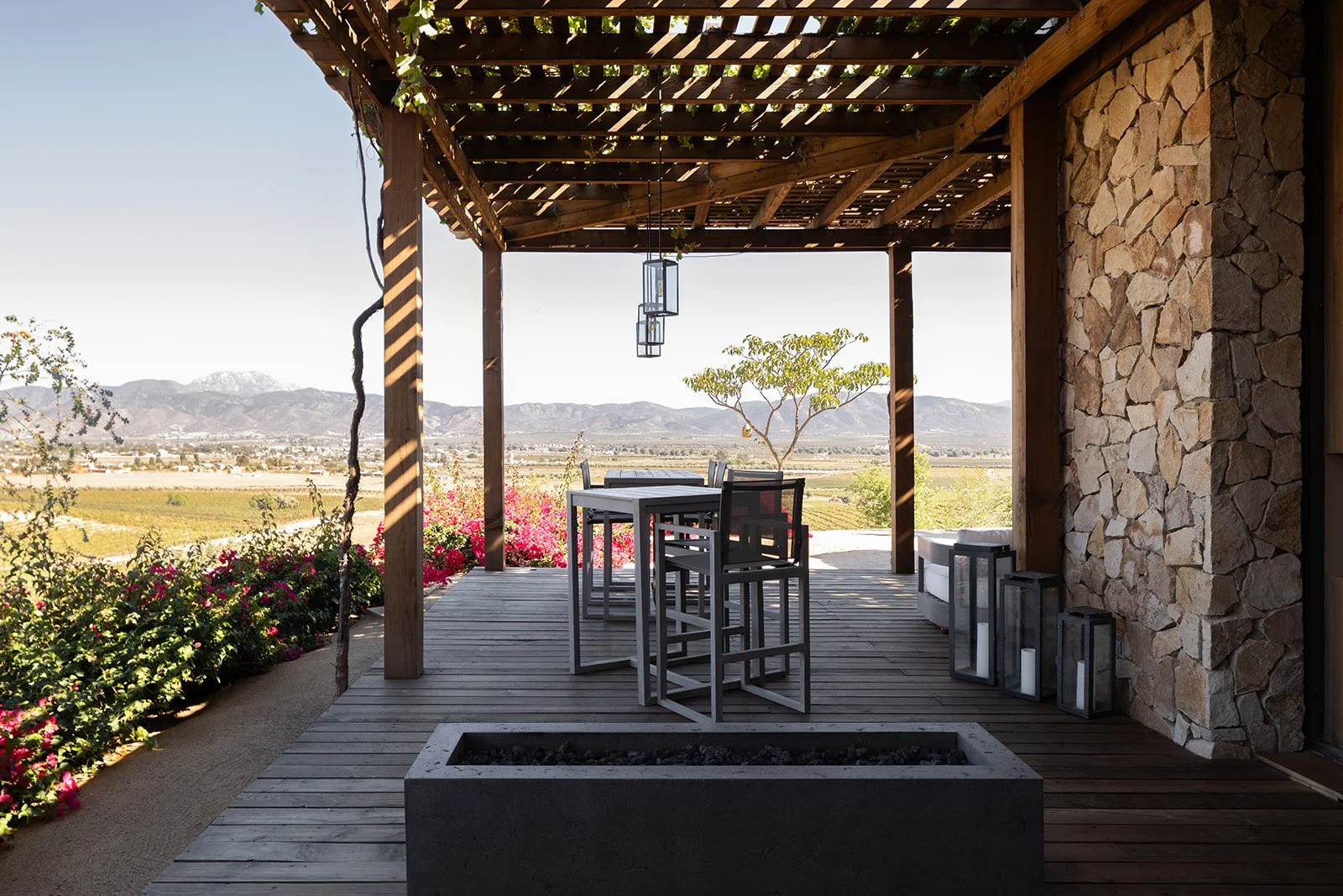 Casa Mil Waá toma su nombre de la lengua indígena Kiliwa, donde significa "ser y estar". Ubicada en el corazón del Valle de Guadalupe y rodeada de viñedos, esta casa de retiro es un refugio rústico y sofisticado que invita a la relajación y a la desconexión. A lo largo de la casa, el uso de artesanías cuidadosamente seleccionadas da vida a cada rincón, aportando carácter, historia y un sentido de pertenencia al entorno. Tonos claros, telas suaves y materiales naturales crean una atmósfera de calma que acompaña las vistas espectaculares del valle. Más que un lugar para alojarse, Casa Mil Waá es un espacio para sentir, contemplar, y simplemente ser y estar.
